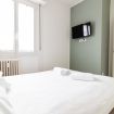 Situato all'ultimo piano di uno stabile signorile, l'appartamento è composto da due suite matrimoniali fornite di tv, un ampio bagno finestrato e una stanza con cucina attrezzata e tavolo da pranzo. Completa l'appartamento la presenza di un terrazzo in zona giorno. La luminosità degli spazi e l'ubicazione centrale la rendono la soluzione perfetta per soggiornare a Milano.